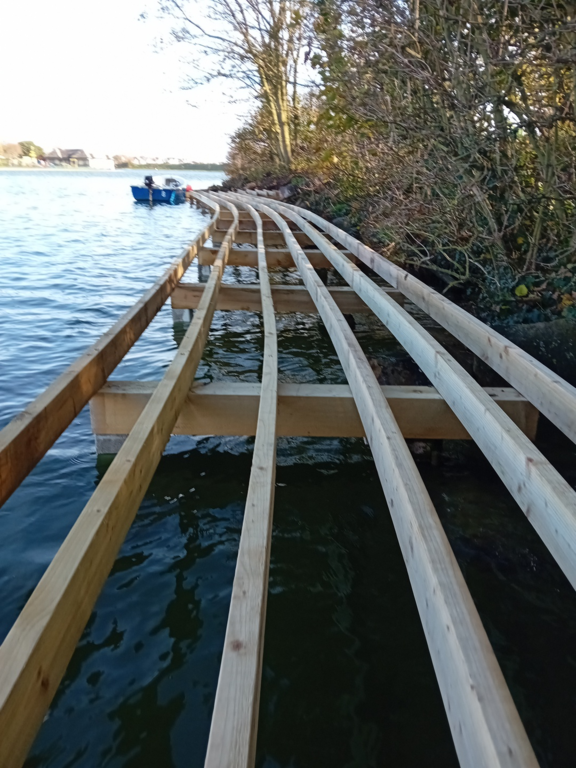 The boardwalk has been specifically designed to support educational use, allowing children to safetly access the island for forest school activities, outdoor learning, and environmental exploration.