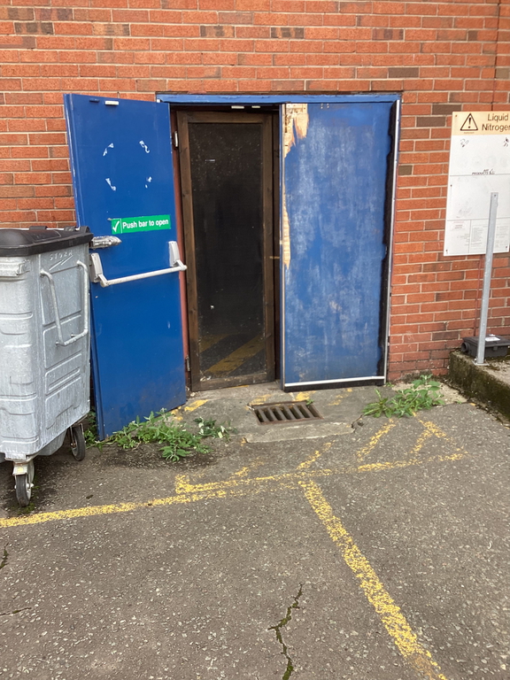 New steel fire doors installed to replace timber doors.